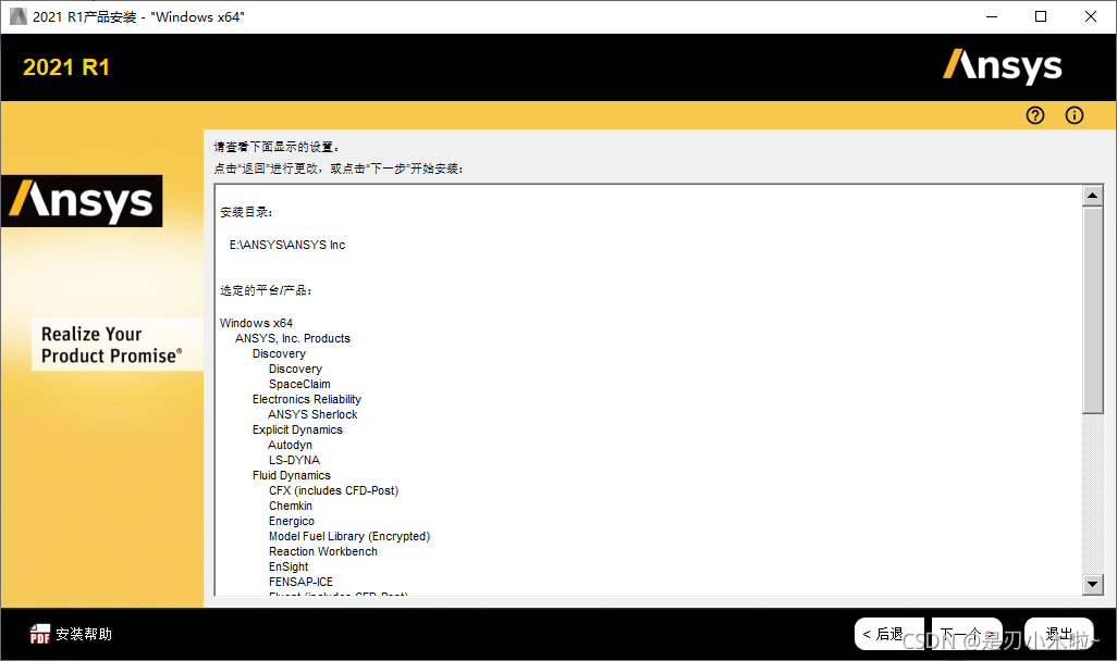 下面为ANSYS2021 R1版 安装教程 ,注意在安装之前应首先完全卸载旧版本的证书管理器(如果有的话),下面为安装步骤,仅供参考学习。请照着本教程一步步安装,博主亲测安装成功。