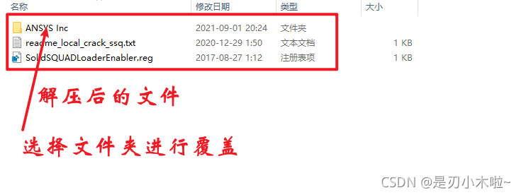 解压_SolidSQUAD_文件,找到ANSYS InC文件, 复制到 ANSYS安装目录下,覆盖原文件。