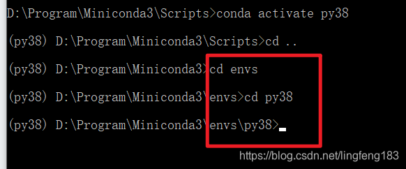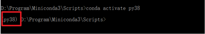 3、激活Python3.8环境,输入命令 conda activate py38激活新创建的py38环境,以便安装第三方包.