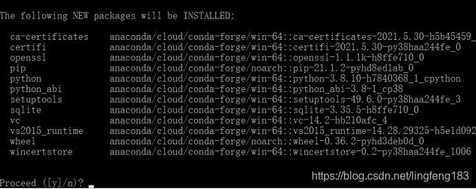 输入命令conda create --name py38 python=3.8创建Python3.8虚拟环境。