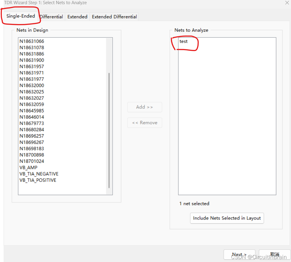 3> 选择单端,然后把待测的test网络添加进来,点Next。