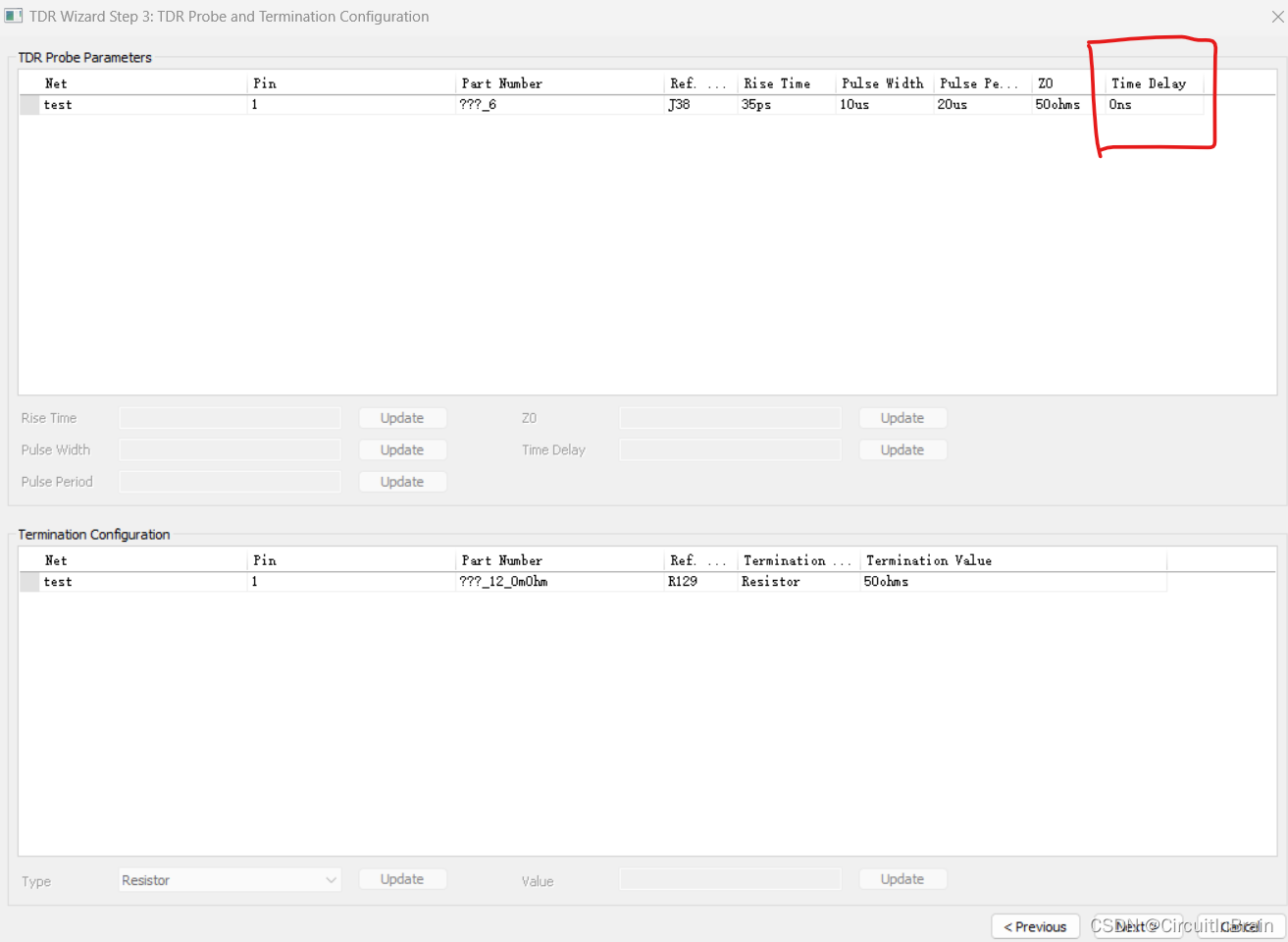 5>这里是设置TDR的信号发生边沿周期这些,一般可以不修改,我们把time delay改为0ns。