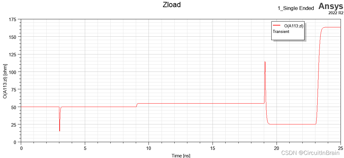 信号到负载电容的时间为1.5ns,然后在容性负载产生发射,又经过1.5ns给到TDR测试源,所以在3ns处看到容性负载的反射,然后又经过3ns的50R传输线到55R的传输线,所以在9ns(4.5ns *2)时,TDR测到55R传输线的阻抗变化,后面以此 类 推。