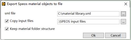 3.选择 Material library 保存的位置,并且 name 命名材料库,copy 材料属性文件到 input 文件夹,使用时 *.sml 需和 input 文件一起打包。