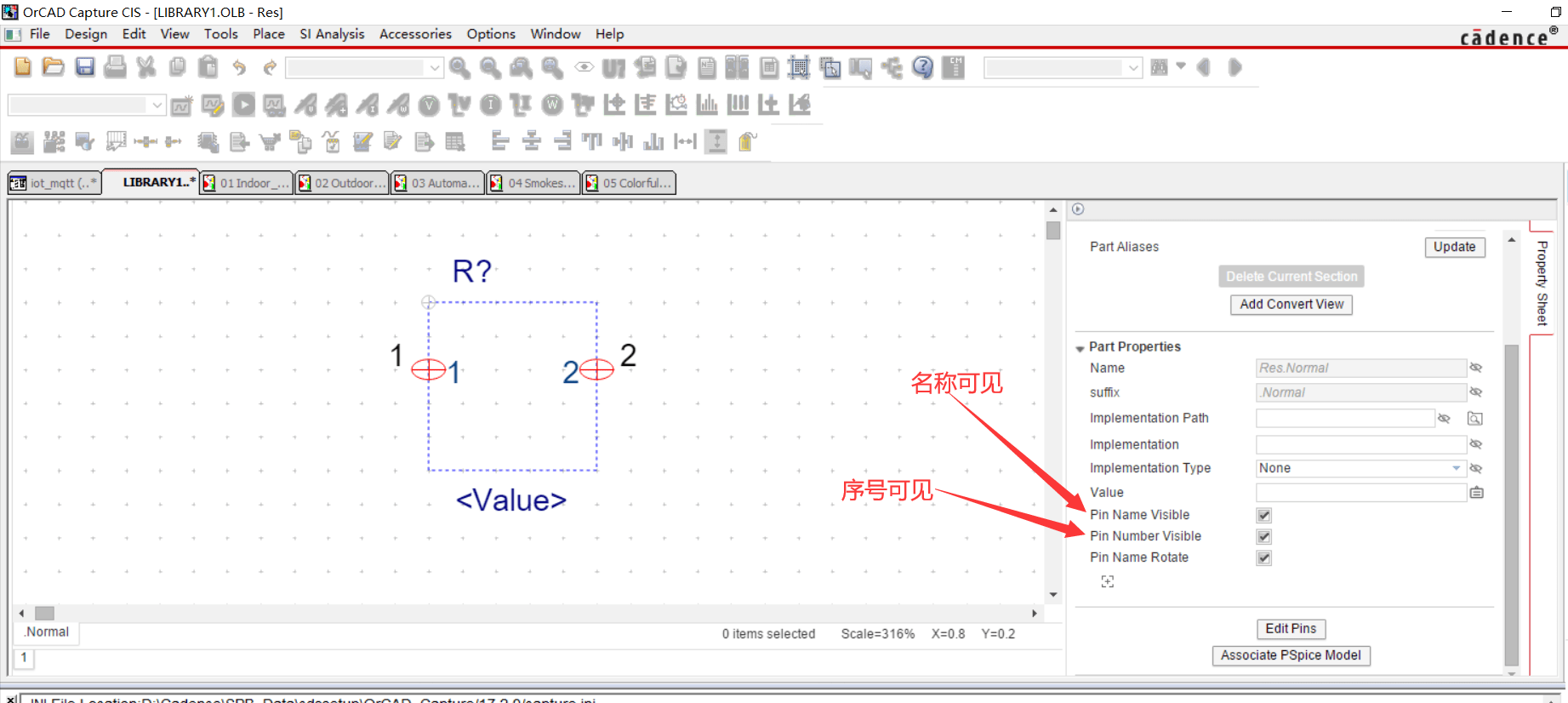 因为电阻的两个引脚没有区别,我们可以将引脚名称和序号去掉,