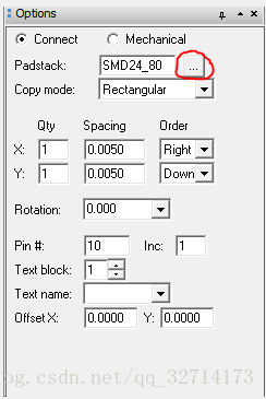 选择 layout pins这个选项或者ADD Pins这个工具,然后在options工具栏出现以下选项。Padstack这边选择焊盘路径。