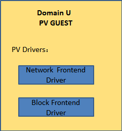Xen中的PV Domain Guest包含两个驱动,“PV Network Driver”和“PV Block Driver”,分别负责接收虚拟机中的网络请求和磁盘请求,如下图所示: