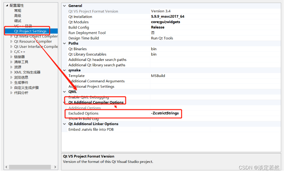当通过Qt VS Addin插件使用qt框架后,即使按照上述方式进行修改,C2664依然存在,原因在于QtProjectSetting会在默认设置之后再额外附加部分命令行内容,进而改写用户在vs项目设置中的设置项