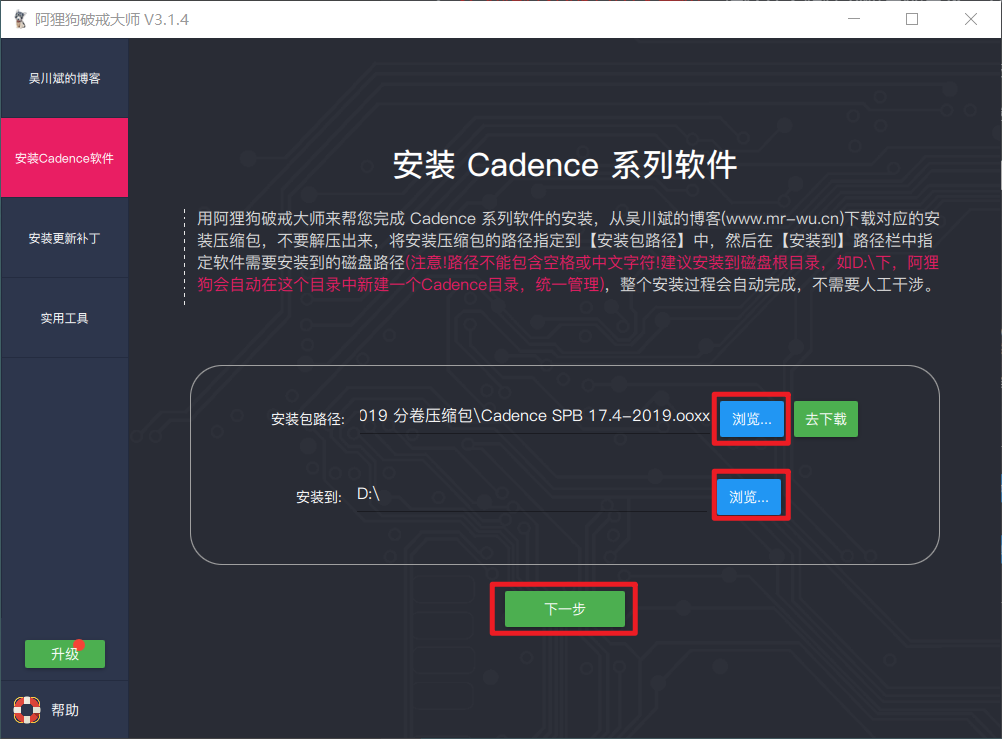 Cadence相关资源关注吴川斌的博客,吴老师制作了Cadence的自动化安装破戒工具“阿狸狗破戒大师”,一键安装并完成和谐,省心省力,安全无毒。