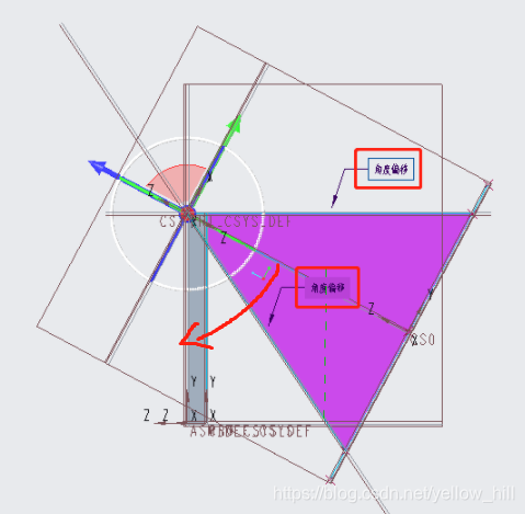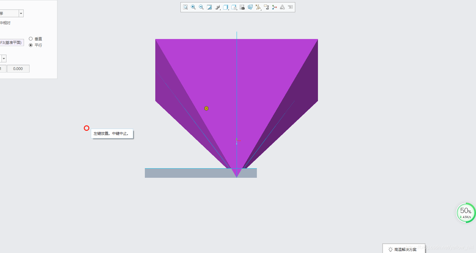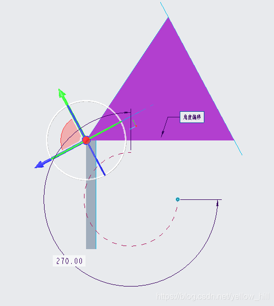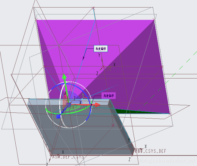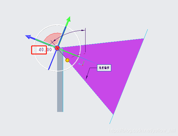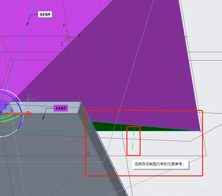 我们的目标是劈开椎体,那么,椎体的中心要偏转到板子中间才行,【注意】开始图上这些,【角度偏移】一开始还没选择参考面的时候是没有的。