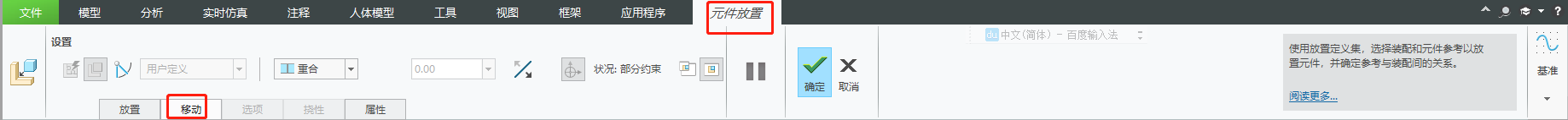 我们选定了这个板子,就会给移动设定了一些规矩,否则,你会发现,零件可以任意旋转移动。