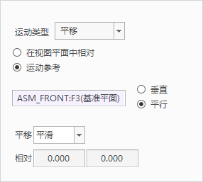 我们把这个移动 定义为【平移】、然后,【平移】还需要运动参考,我们就贴着FRONT视面的上表面做【平行】的平移。