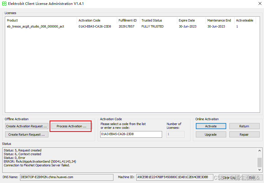 然后点击左侧工具栏的Process Activation选项,选择生成的离线激活文件