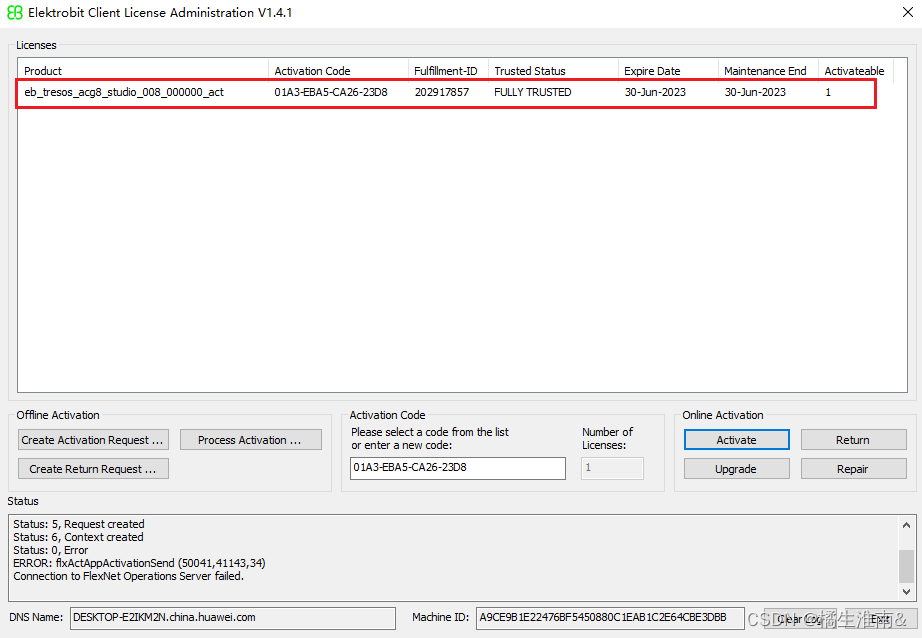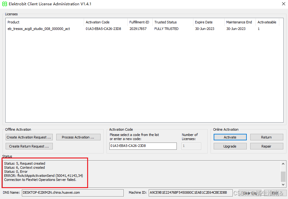 出现以下问题后,先检查是否有外网权限,然后尝试修改代理,如果还不行就选择离线激活方式。