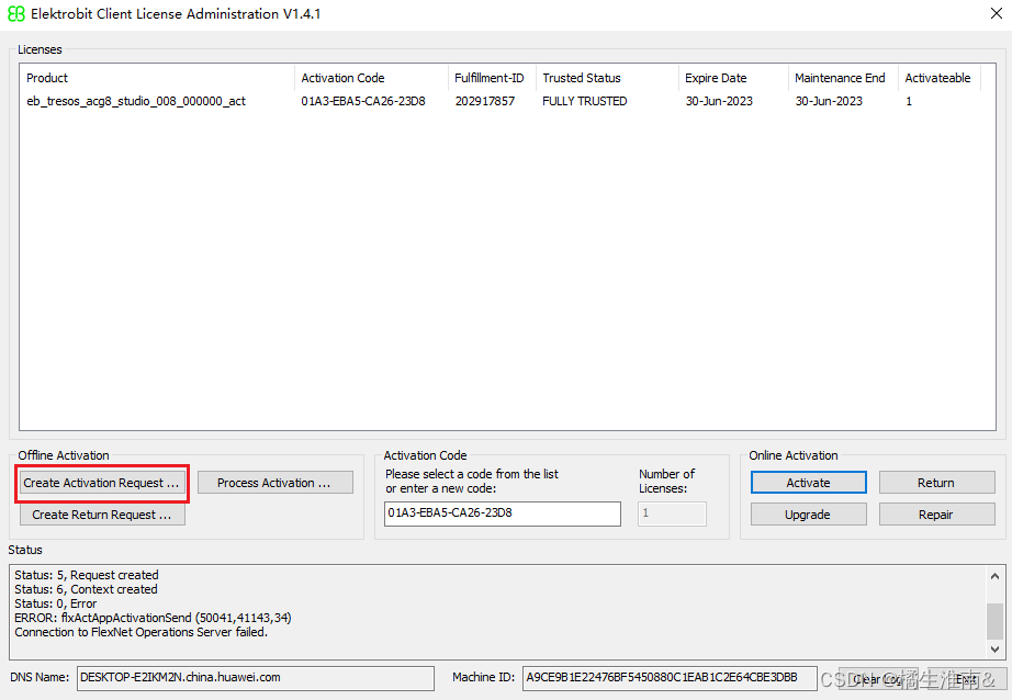 点击左侧工具栏中的Create Activation Request 选项创建离线请求文件(.xml文件),可选择保存路径