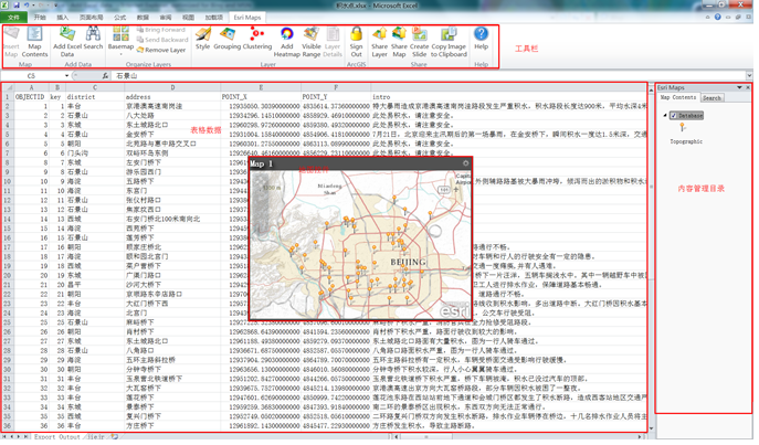 在数据量比较大的情况下,数据显示、操作等的性能会明显下降,maps for office考虑到了这种情况,也采取了非常有效的措施。本次实验数据26818条记录。