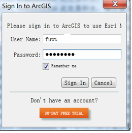 使用online账号登陆。如果没有账号,需注册https://www.arcgis.com/home/signin.html。online提供30天免费试用。只有Online用户才能使用Maps for Office。