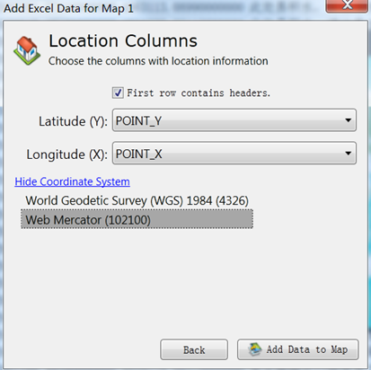 现有Excel数据,含坐标信息,空间参考为web墨卡托。