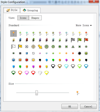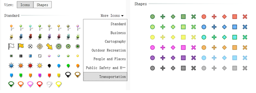 有两种符号类型,Icons(图标,左图)和Shapes(图形,右图)。不能使用自定义符号。可以设置符号大小。