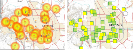 这两种类型符号的区别在于选择要素时,高亮显示样式不同。对于图标来说,高亮显示是默认的样式(左图),而对于图形来说,选择要素时可以设置高亮显示的颜色(右图)。