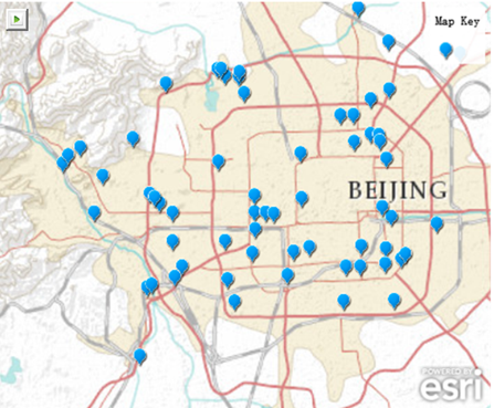 本次实例数据就是为了展示数据的位置信息,进行基本的符号渲染就可以了。符号渲染后地图制作就算完成了。接下来就是要把所做的地图分享给别人。在maps for office中,提供了三种分享方式:分享到arcgis online、分享到powerpoint、以图片形式随意拷贝分享。分享时,可以分享单个图层,也可以分享整幅地图。