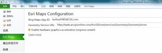 如何改善这种情况呢?esri提供了硬件加速功能(采用diectx硬件加速)。具体操作如下:在文件->Esri Maps页面下,选中启用硬件加速复选框。接下来关闭当前工作,重新启动excel。