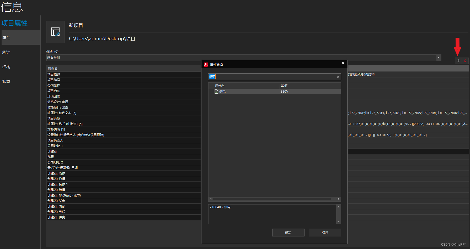 点击文本下拉框,选择项目属性,弹出属性(特殊文本)对话框。