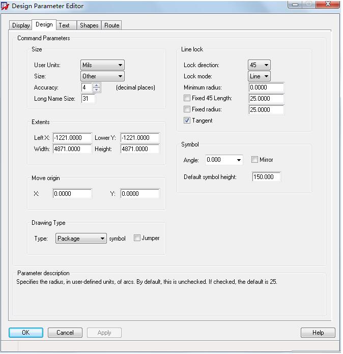 焊盘的后缀名是.pad,封装的后缀名是.dra。在绘制封装的时候要确定封装的大小,然后选择相应的绘制图纸,在绘图软件中,选择setup-> Design Parameters