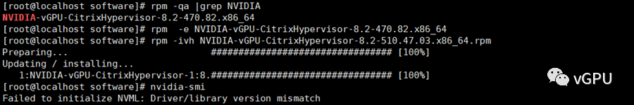 所以按照之前的经验以为只需要把vGPU 13.1 卸载,然后rpm -ivh安装14.0的版本即可完成升级工作。