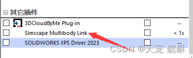 这时打开Solidworks->设置->插件就可以看到Simscape Multibody Link插件了。
