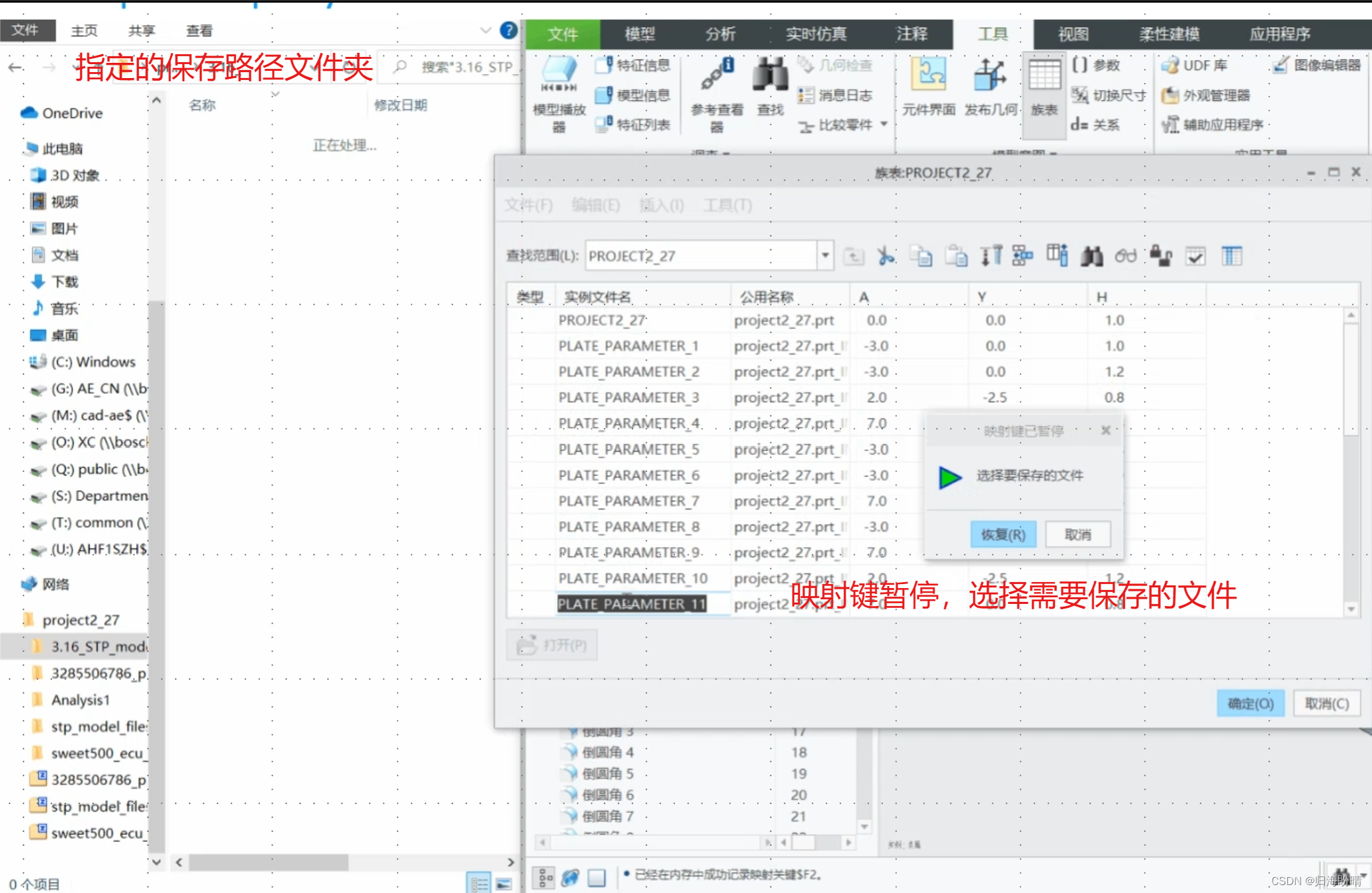 实例 :映射键快速保存单个的族表模型文件,同时 转换 成STP格式 。