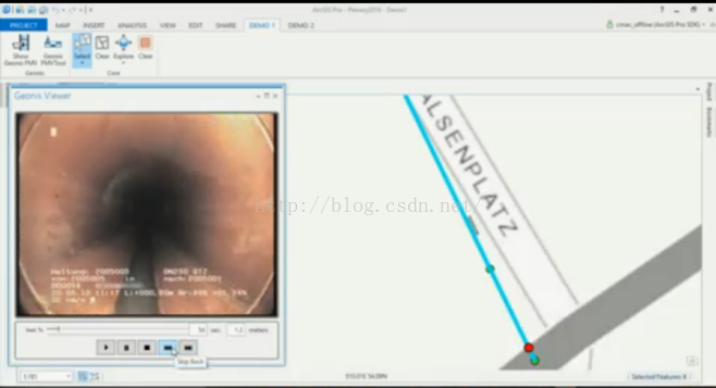 ArcGIS Pro是一款多线程的应用程序,这意味着它可以在不同的线程上运行处理工具。这样,你可以构建高性能和动态的应用程序,给用户一个极好的用户体验。接下来,我们一起看看,基于ArcGIS Pro SDK定制开发的炫酷功能。 在Pro中可以轻松的实现视频与地图联动效果,查看管线中不同位置的视频。我们可以看到,图中左侧加载了数据库中的摄影视频,右侧记录了相机的所在的位置。当我们点击播放视频,可以看到随着视频的进行,有图中相机的位置也随之移动。同样当我们点击右侧地图上的管线,左侧的视频也会随之联动到相应的位置。基于ArcGIS Pro SDK计算摄像机速度,管线所在位置等信息实现联动效果。