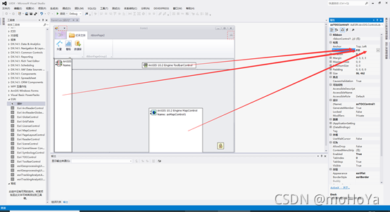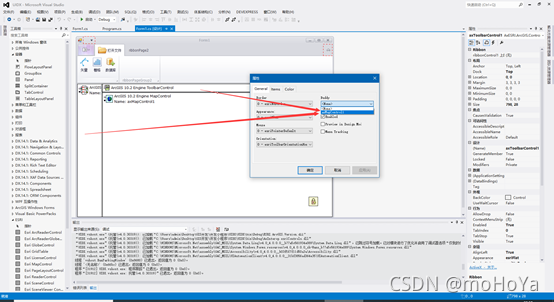 (5)将TOCControl数据列表和ToolbarControl工具条的属性该为,(选择窗口右键,出现窗口,选择【属性】)如图;