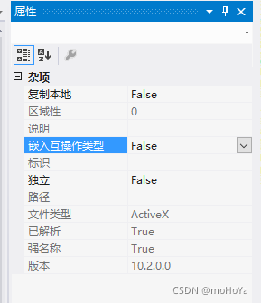 (3)修改引用属性;除新添加的两个引用除外,esri开头的引用属性【嵌入互操作类型】修改为:false,如图: