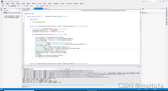 private void barButtonItem6_ItemClick(object sender, DevExpress.XtraBars.ItemClickEventArgs e) { OpenFileDialog OpenMXD = new OpenFileDialog(); OpenMXD.Title = "打开地图"; OpenMXD.InitialDirectory = "https://www.gofarlic.com\\FASTrs"; OpenMXD.Filter = "Map Documents (*.mxd)|*.mxd"; if (OpenMXD.ShowDialog() == DialogResult.OK) { string MxdPath = OpenMXD.FileName; axMapControl1.LoadMxFile(MxdPath); // axMapControl1为数据视图名称 } }打开数据库