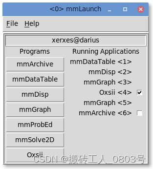 •在mmLaunch窗口中,单击Oxsii按钮以启动Oxsii的程序实例。