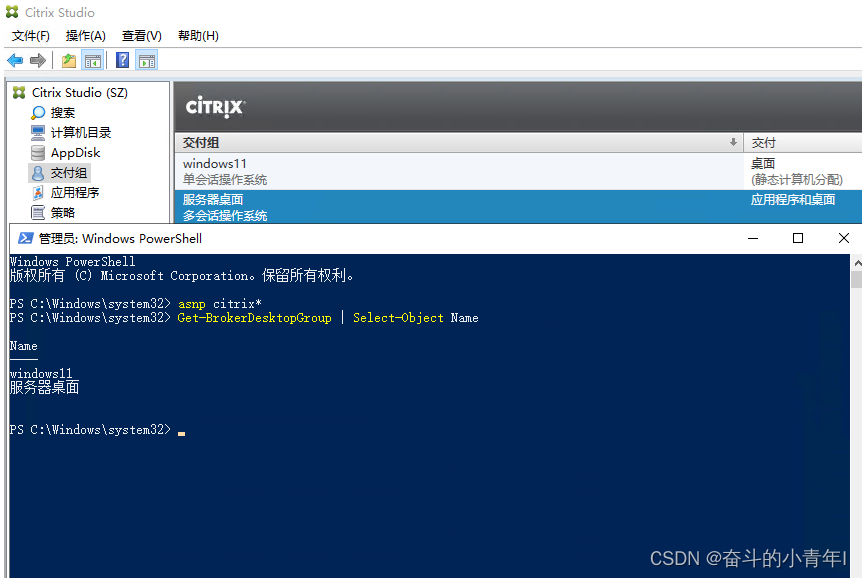 如下图我随便以一个为例子。先使用Get-BrokerDesktopGroup | Select-Object Name 命令查看当前所有交付组