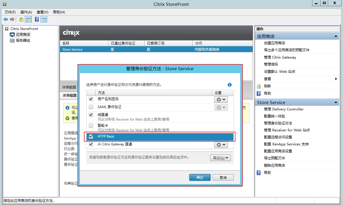 1.1、首先配置Storefront,为Store Service启用“HTTP Basic ”身份验证,多个Storefront记得传播更改;