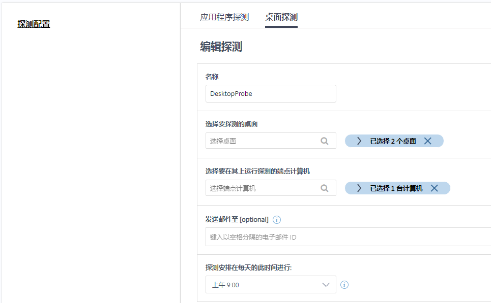 2.6、需要注意的是每个探测规则每天只可以做一次,一天多次探测需要建立多条探测规则;如下图,为桌面定义为每天的中午9点,下午2点分别做一次探测;探测时间只可以选择整点,不可以选择立即执行探测;希望后面版本可以增加更多的时间灵活性。