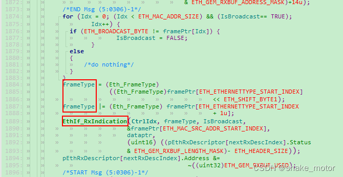硬件接收到任何以太网报文的时候都是通过EthIf_RxIndication 一级一级向上通知,并根据报文类型,分发给不同的模块处理。收到gPTP报文也不例外,在Eth_Private.c的Eth_HwReceive 函数内,通过EthIf_RxIndication ,向上通知,如下图: