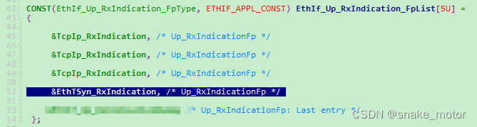 配置完成后才会在回调函数的 数组 内,添加EthTSyn_RxIndication 函数指针,如下图: