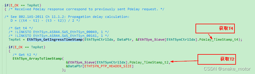 pdelay_resp 在函数EthTSyn_ProcessRxPdelayRespFrame内处理,主要作用是获取T4 与T2,