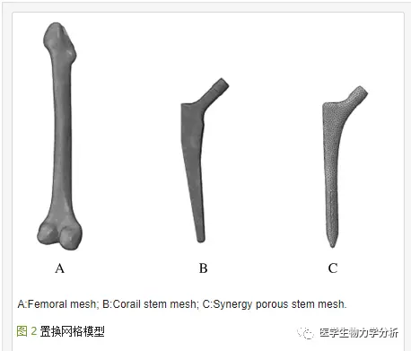 本研究模拟解剖型假体全髋关节置换,比较2种不同解剖型假体来对比分析置换后的应力和下沉位移情况。目前临床手术中普遍使用Corail与Synergy porous解剖型钛合金(Ti6Al4V)假体,这2种假体适用性较好,但术前为患者选取假体时无可靠理论依据,因此本研究通过有限元模拟对2种假体置换后的应力分布与相对位移下沉进行分析,以期为临床手术的术前规划提供可靠的理论参数。