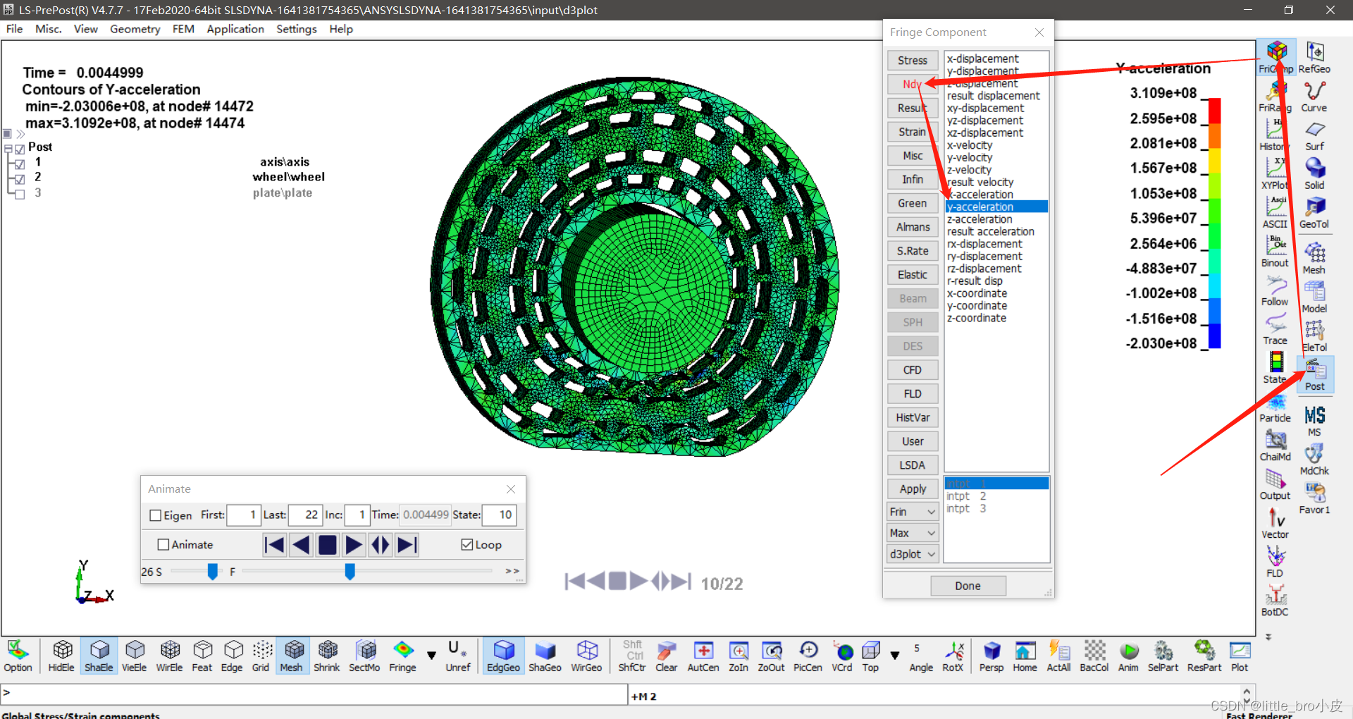 5.将生成的结果下载到本地,在input文件夹找到d3plot文件拖入lsprepost界面内
