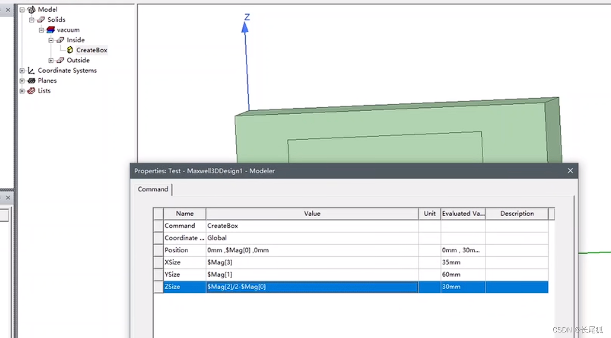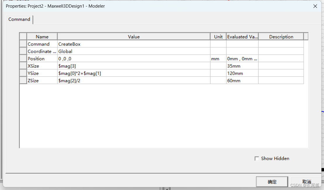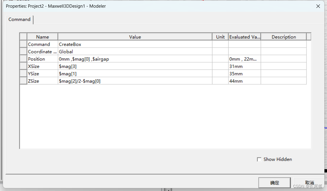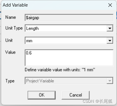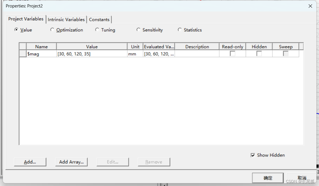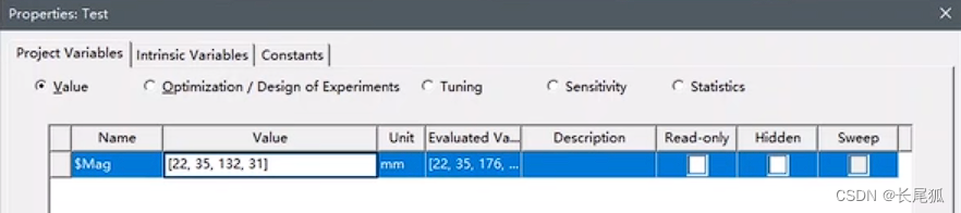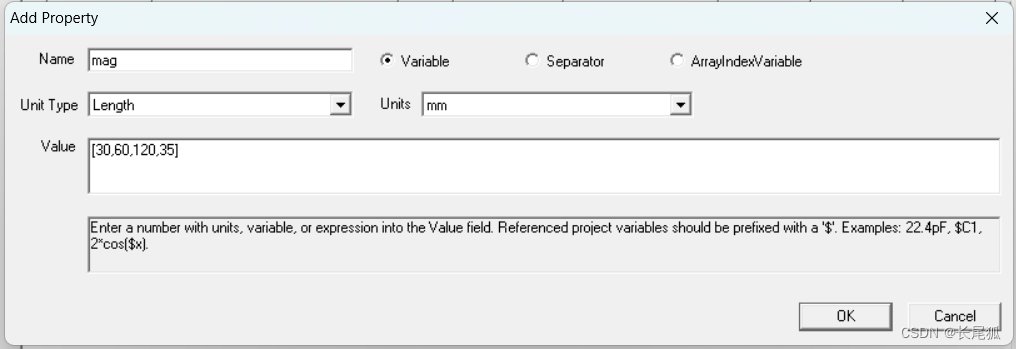 (2)输入以下参数,选择变量mag,选择特性为length,单位为unit,输入一个数组数值作为初始值。