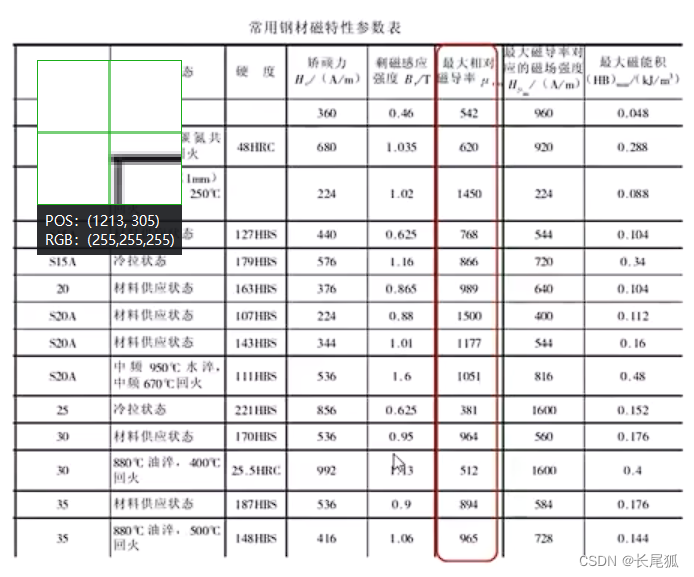 (2)以上位置对应的磁场强度为最大磁导率对应的磁场强度