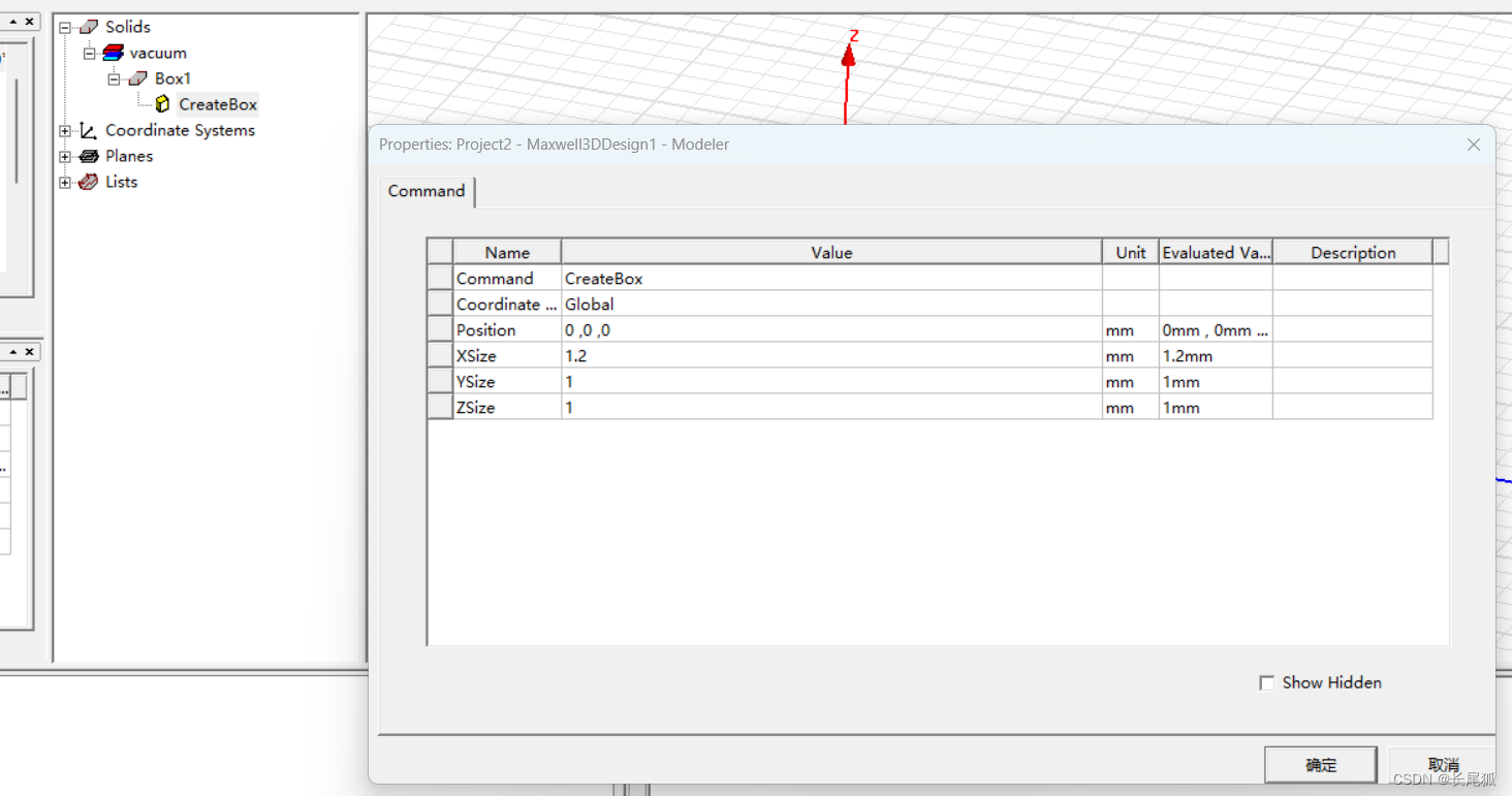 (3)添加正方体,选定creatBOX并指定名字、参数。