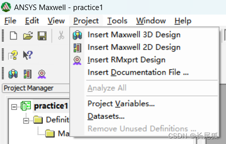 1.创建一个新的工程文件,然后点击project-insert Maxwell 3D Design / insert Maxwell 2D Design等进行2D或者3D的重建,此处选择3D模型建立