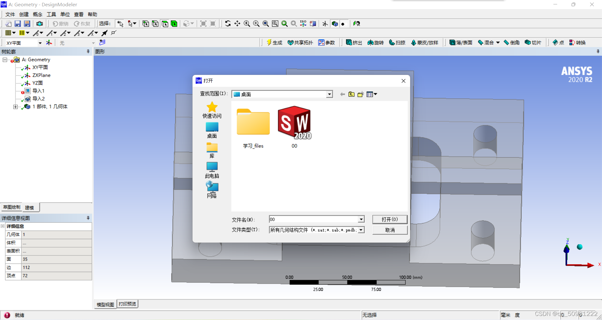 外部中间格式的几何模型,例如stp、x_t、sat、igs等,都可以导入到ANSYS 2020 R2 workbench。