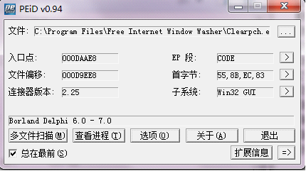 打开安装目录,将Clearpch.exe放入OD查壳,发现程序时无壳的